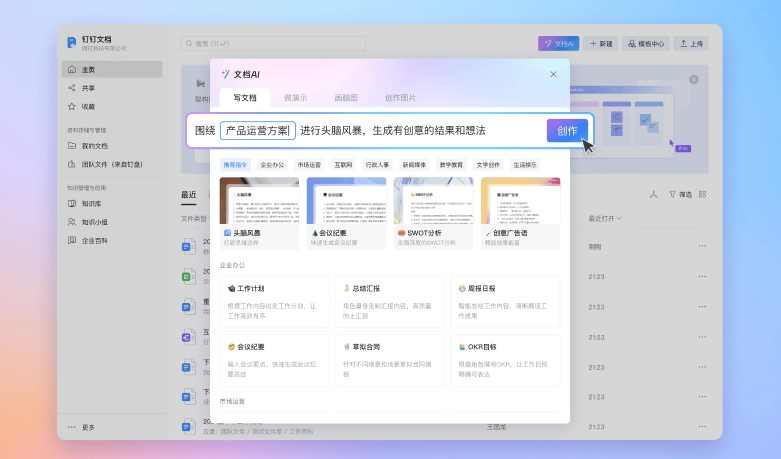 提供超過(guò) 50+ 創(chuàng)作指令,快速上手,一鍵輕松完成各種場(chǎng)景的文檔內(nèi)容創(chuàng)作。