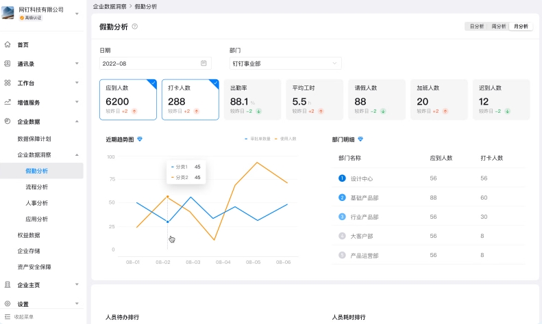 通過(guò)應(yīng)到人數(shù)、打卡人數(shù)、出勤率、加班及遲到等假勤實(shí)時(shí)數(shù)據(jù),全面了解出勤情況,幫助優(yōu)化企業(yè)生產(chǎn)排班計(jì)劃