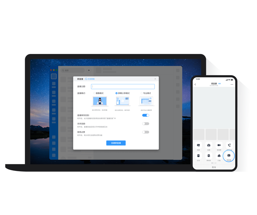 會(huì)議直播用釘釘發(fā)起會(huì)議直播,省去設(shè)備成本,還可將直播范圍控制在企業(yè)內(nèi),更安全更可控。
