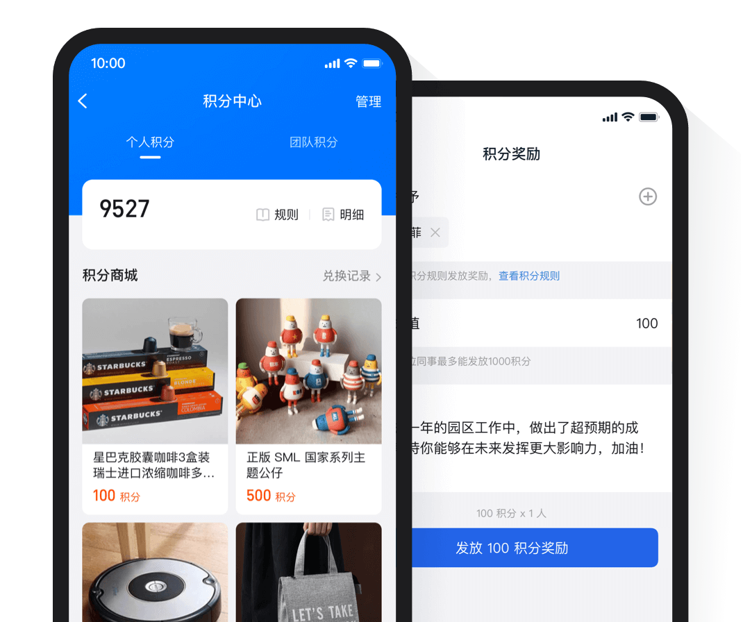 團(tuán)隊(duì)榮譽(yù)積分可作為團(tuán)隊(duì)榮譽(yù)獎(jiǎng)勵(lì),及時(shí)發(fā)放給團(tuán)隊(duì)/員工。還可設(shè)置實(shí)體商品兌換,提升獎(jiǎng)勵(lì)效果。